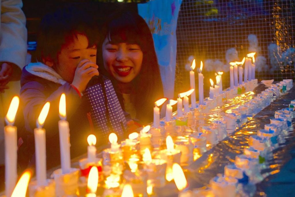 (↑被災した方々と自分自身の命の為に祈りを捧げる献灯コーナーでの一面)